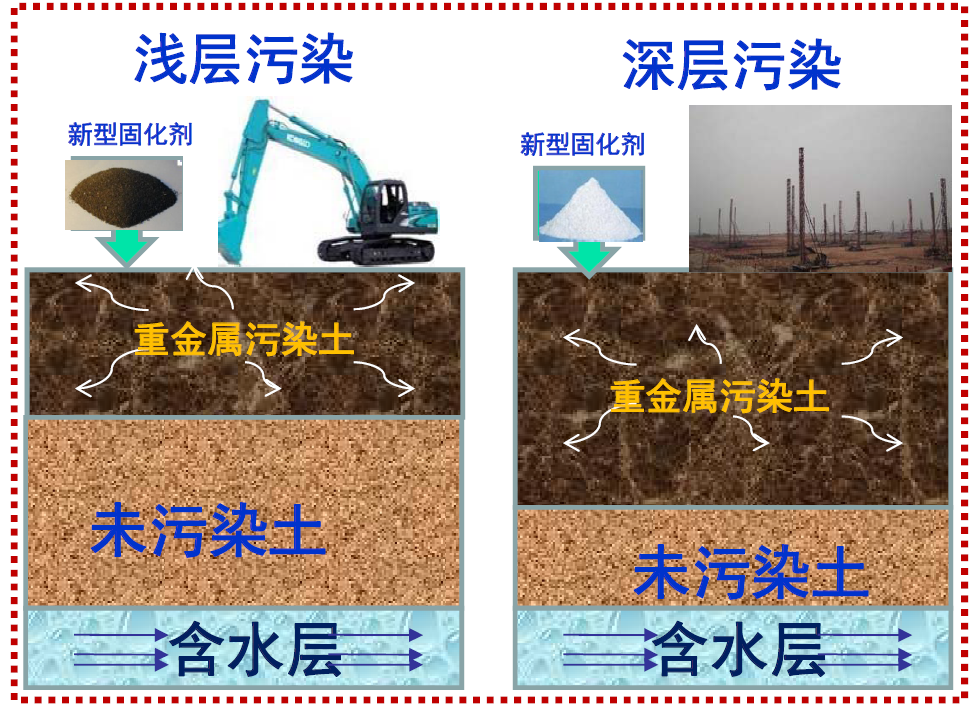 • 开发了高性能固化稳定化药剂,高浓度复合重金属Pb/Zn/Cd/Ni/Cu/As,固化率高达97%以上,具有掺量低4-6%、环境友好、成本低(低于200元/t污染土)优点。采用搅拌混合和原位注入工艺等。
